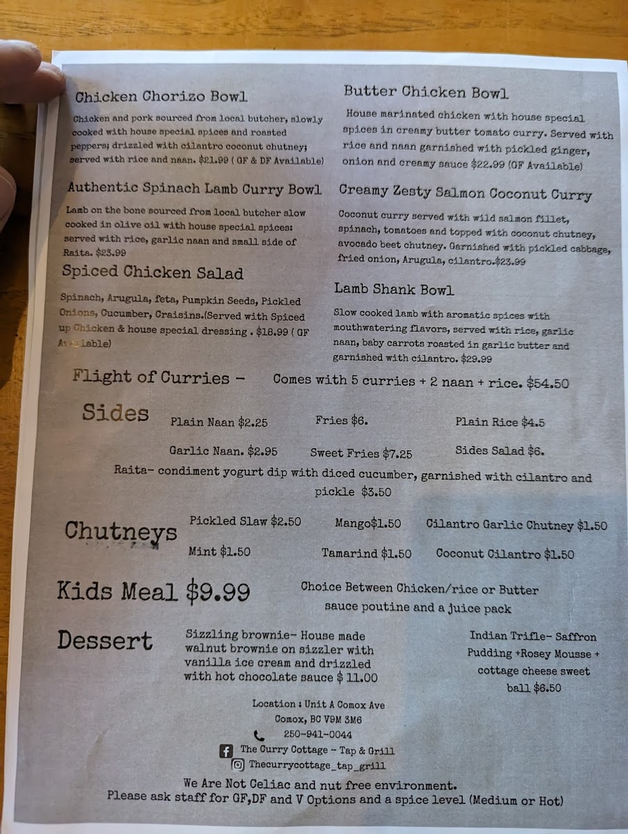 At The Curry Cottage - Tap & Grill, located at 2002 Comox Ave A, Comox, BC, you can enjoy a delightful array of dishes that perfectly blend traditional Indian flavors with a touch of modern twist. Starting with the appetizers, the Sassy Tostadas and Cauliflower Bites are perfect choices to whet your appetite, offering crispy textures and bold flavors. For those in the mood for something hearty, the Cottage Special Wings are a must-try, with a unique twist that sets them apart from typical wings. If you’re looking for a plant-based option, the Veg & Soy Kebab is a flavorful choice that brings a satisfying mix of spices and textures.